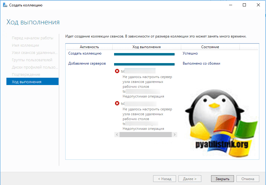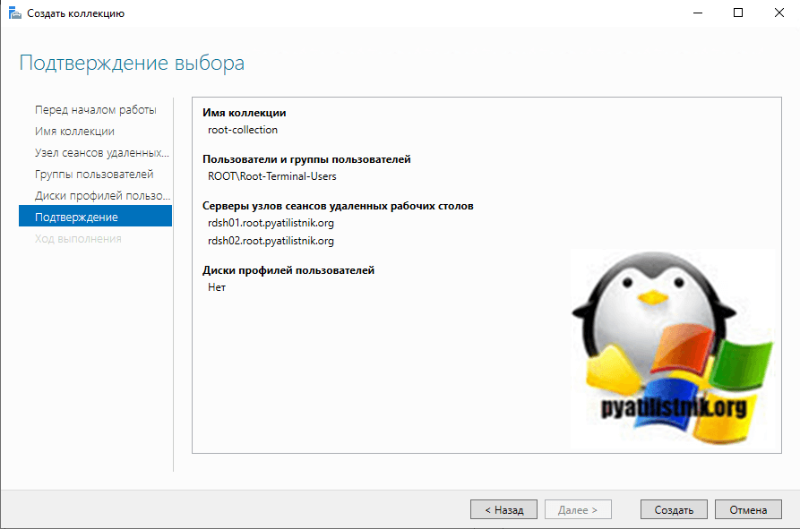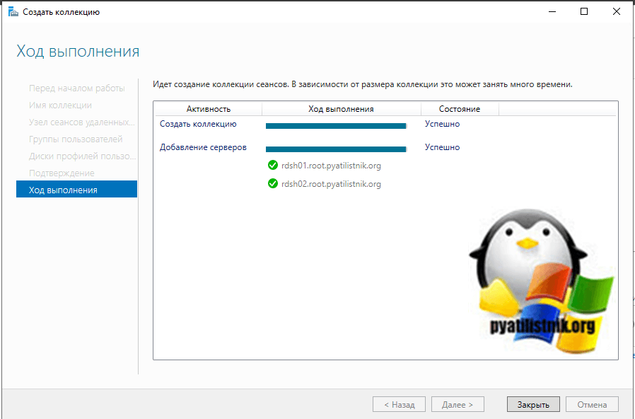 Дожидаемся создания коллекции службы удаленных рабочих столов.