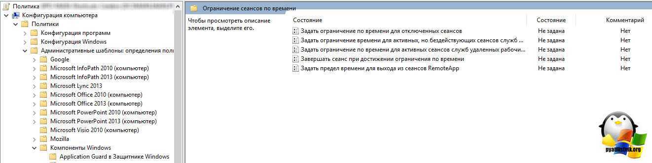 Тут те же параметры, выбираем нужное значение для «Ограничение активного сеанса» и забываем про окно с уведомлением «Таймер входа в систему истек»