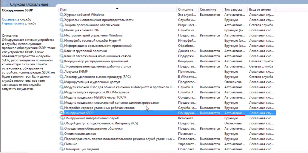 Вторая служба «Обнаружение SSDP» — тоже нужно активировать и поставить автоматическое выполнение