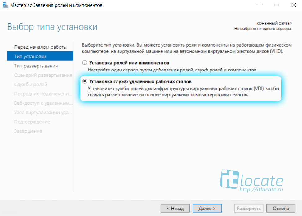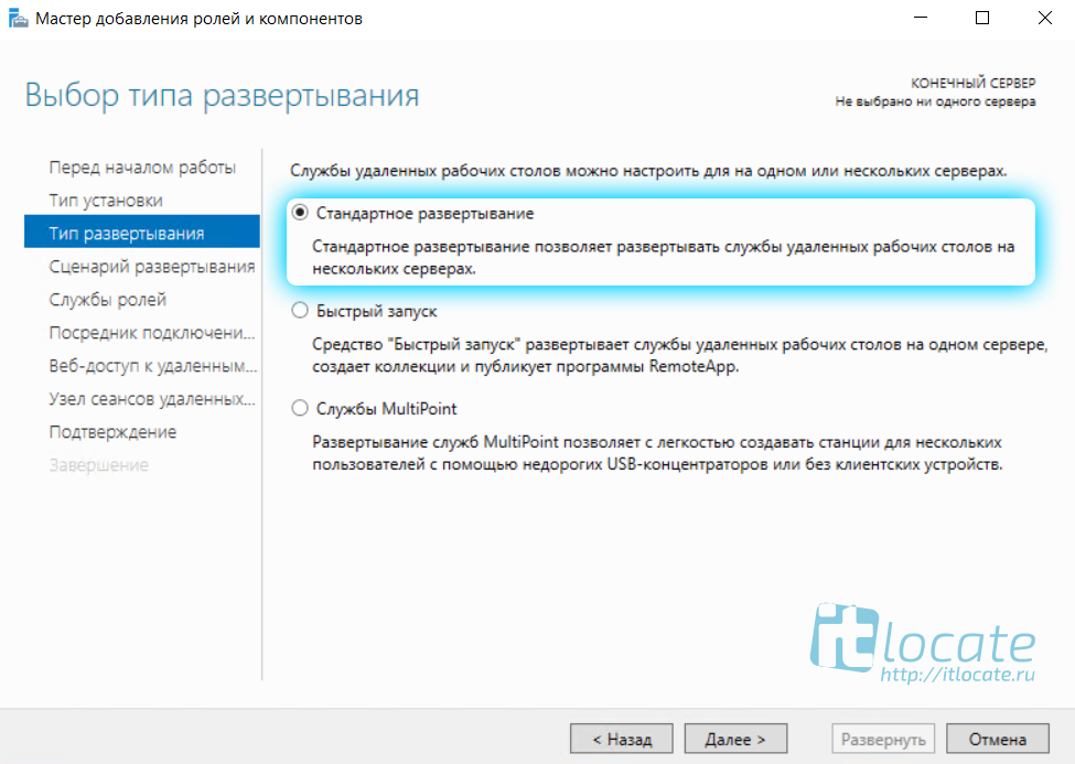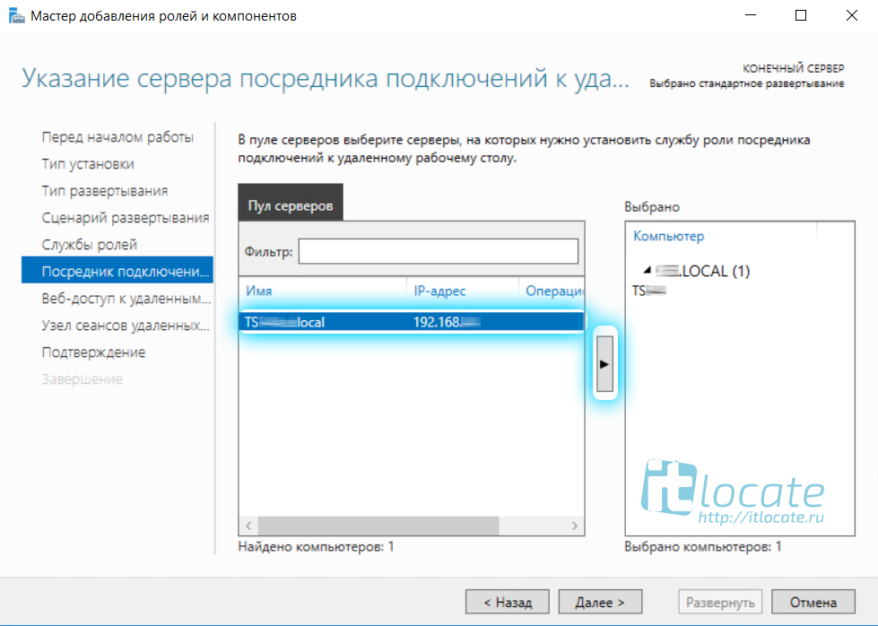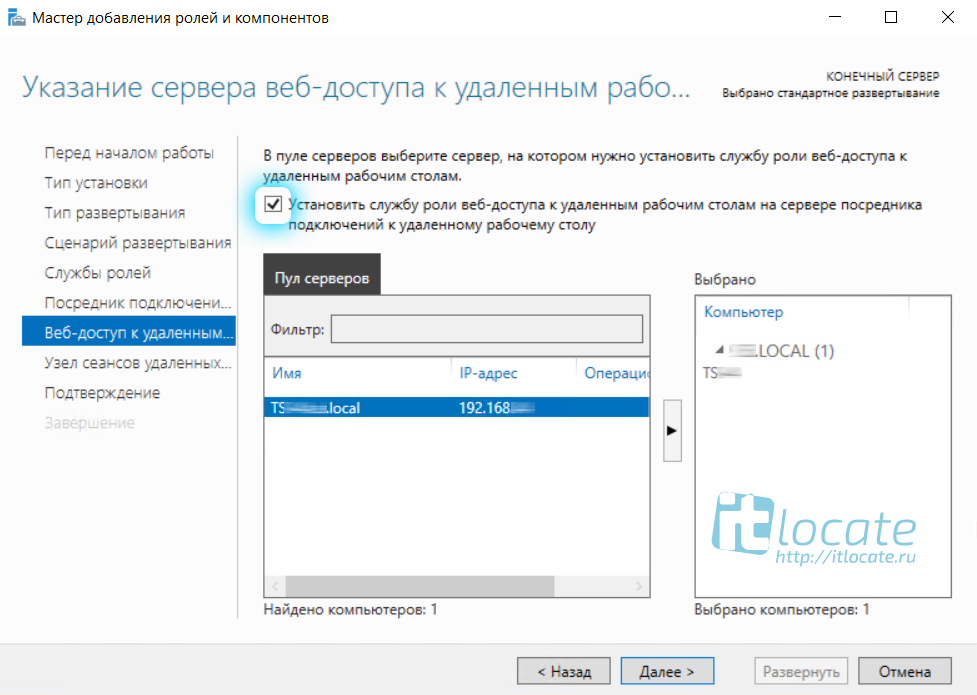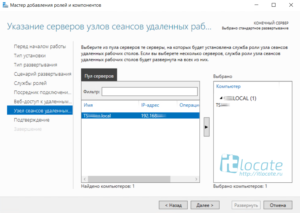 Так же выбираем наш сервер из пула серверов и прожимаем Далее / Развернуть