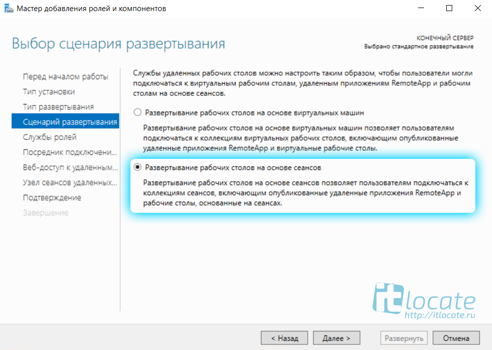 Далее выбираем Стандартное обёртывание xD. И после выбираем Развёртывание рабочих столов на основе сеансов.