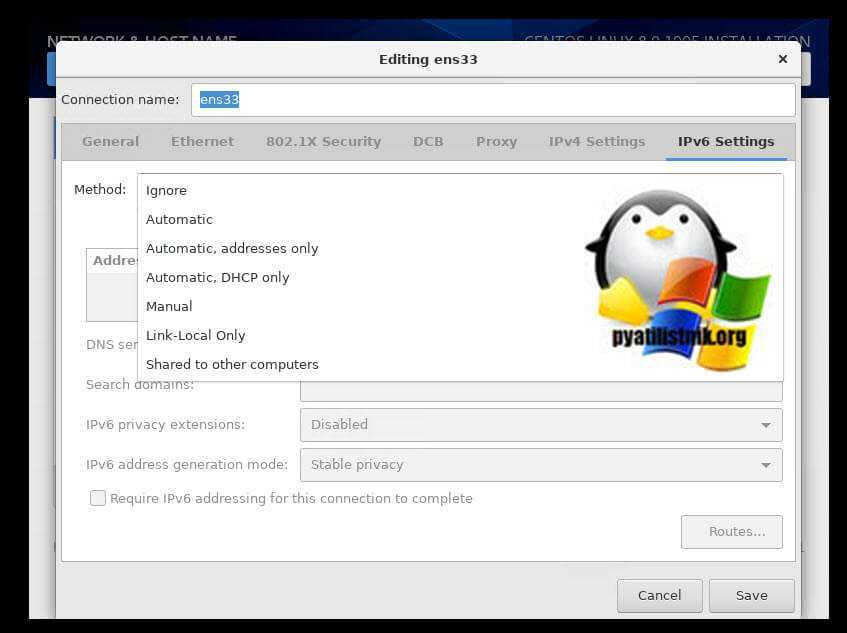 - Автоматическая (Automatic) – NetworkManager использует объявление маршрутизатора (RA) для создания автоматической конфигурации без сохранения состояния.