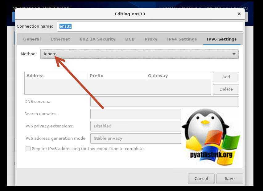 - Игнорировать (Ignore) – IPv6 игнорируется для этого соединения.