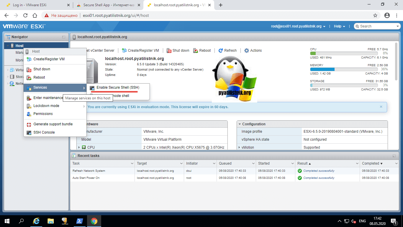 Как включить доступ по SSH и esxi shell на хосте VMware ESXi 5.1-05