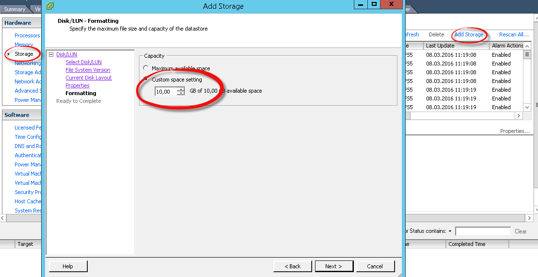 Если вы уже разметили диск и хотите ее высвободить, то можно сжать место на диске, если мы говорим про Vmware ESXI 5.5, то там так же можно при форматировании datastore выбрать нужное количество пространства, которое требуется использовать, и вы также оставляете не размеченным 30 процентов от общего объема. Напомню это делается Configuration > Storage > Add storage > Formating и выбираете там Custom space settings