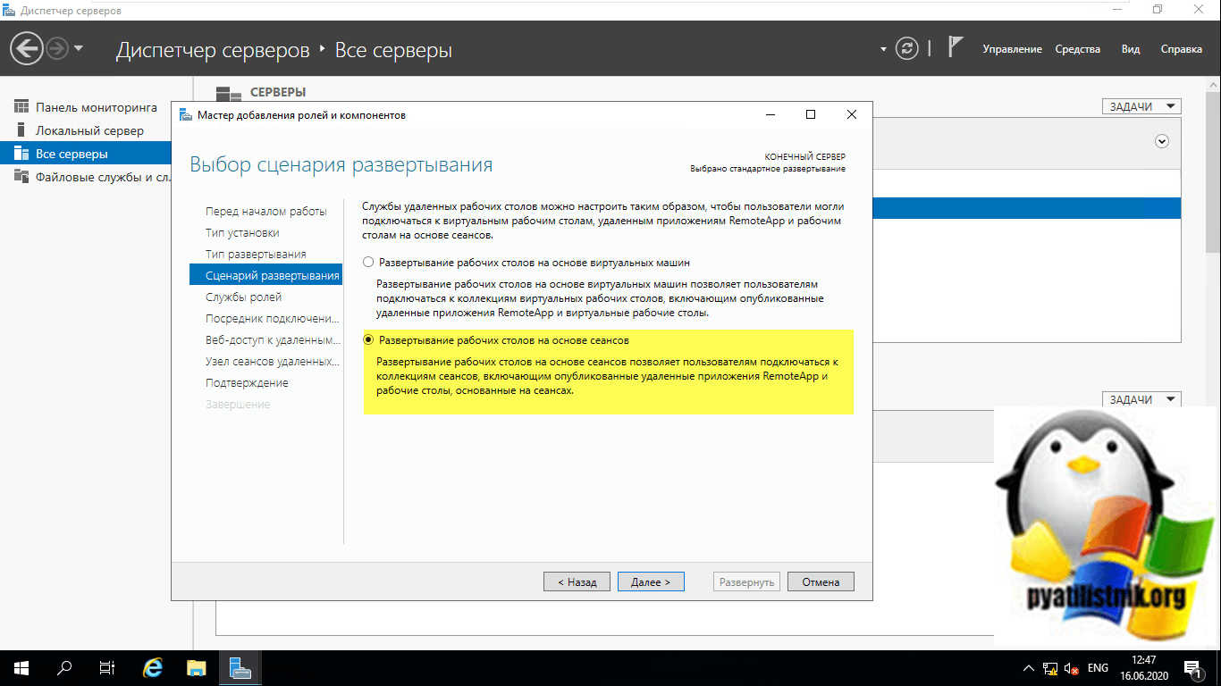 Выбираем второй пункт «Развертывание рабочих столов на основе сеансов (Session-based desktop deployment)»