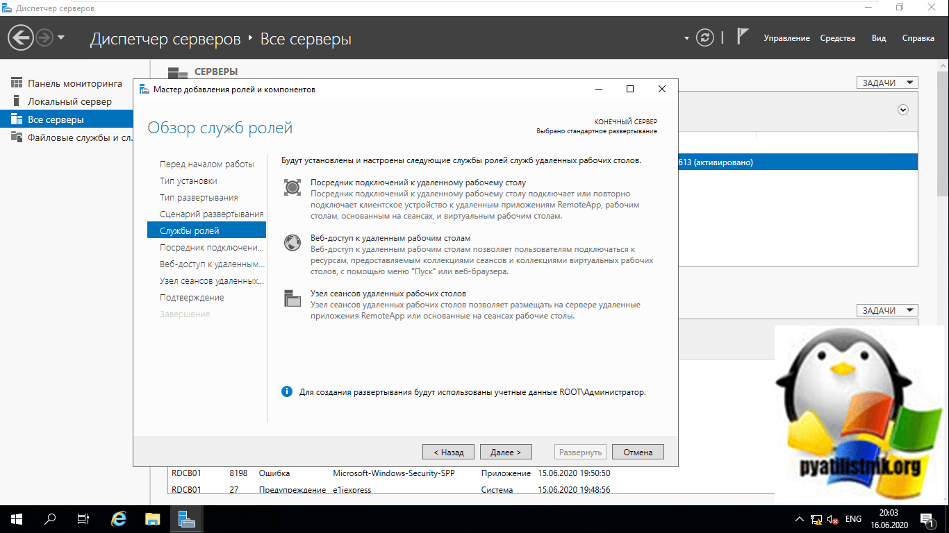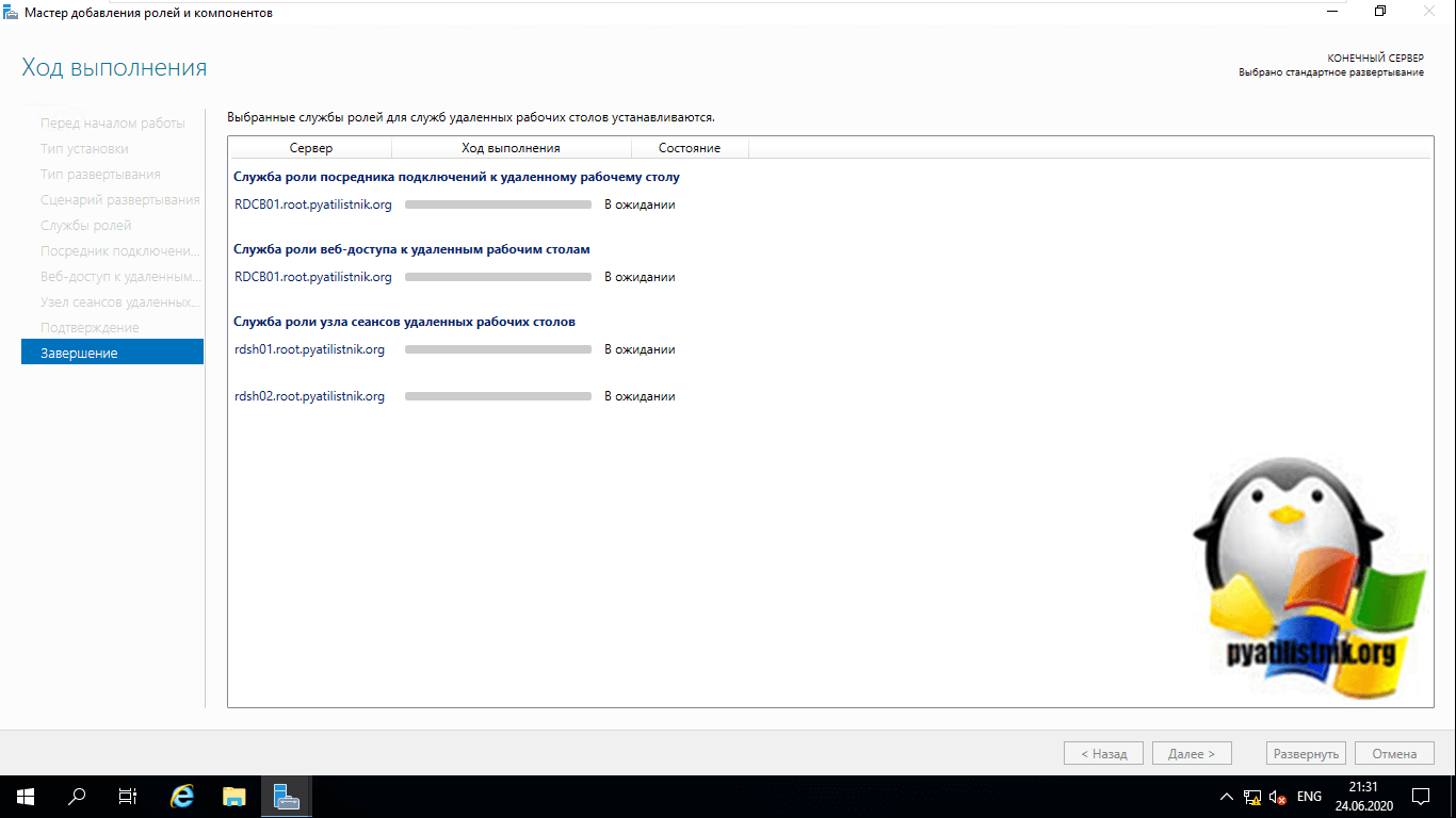 Стандартное развертывание службы удаленных рабочих столов