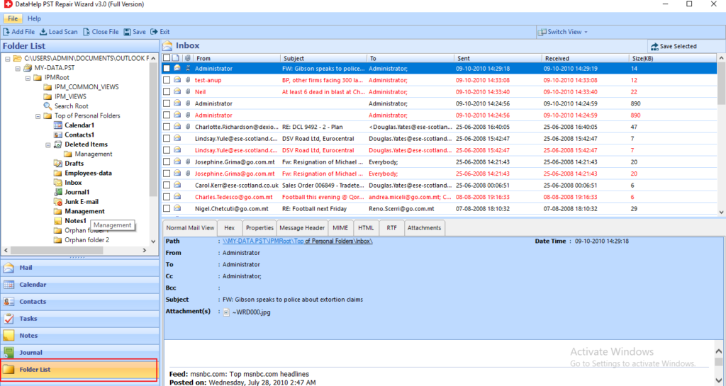 Снова перейдите к PST-файлу Outlook и проверьте, получаете ли вы предыдущие письма или нет. В противном случае файлы PST более подвержены повреждению.