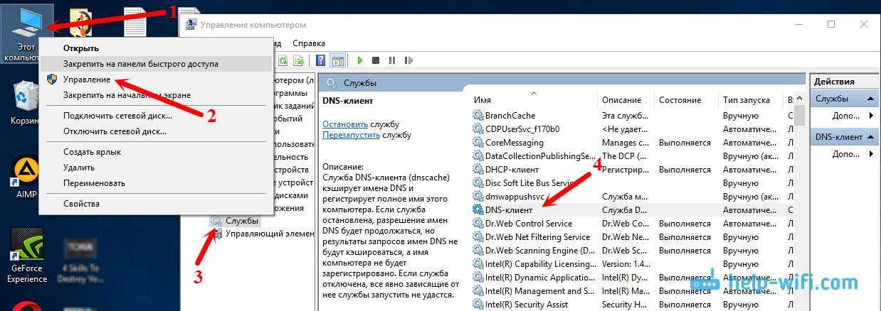 Проверяем службу «DNS-клиент»