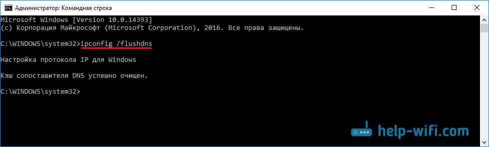 Выполняем команду ipconfig /flushdns.