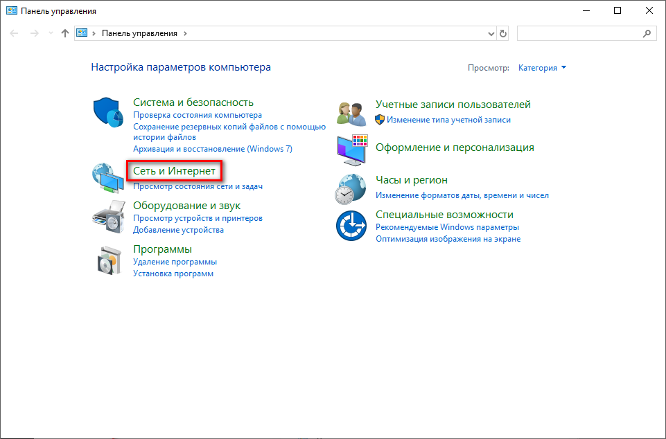 В классической панели управления необходимо выбрать «Сеть Интернет»: