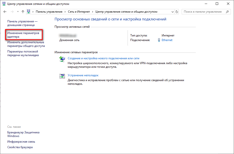 Переходим в изменение параметров адаптера, данный пункт располагается слева.