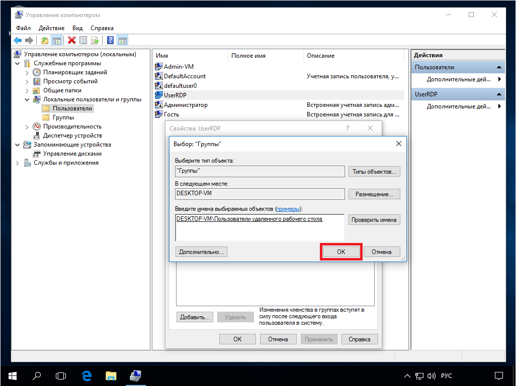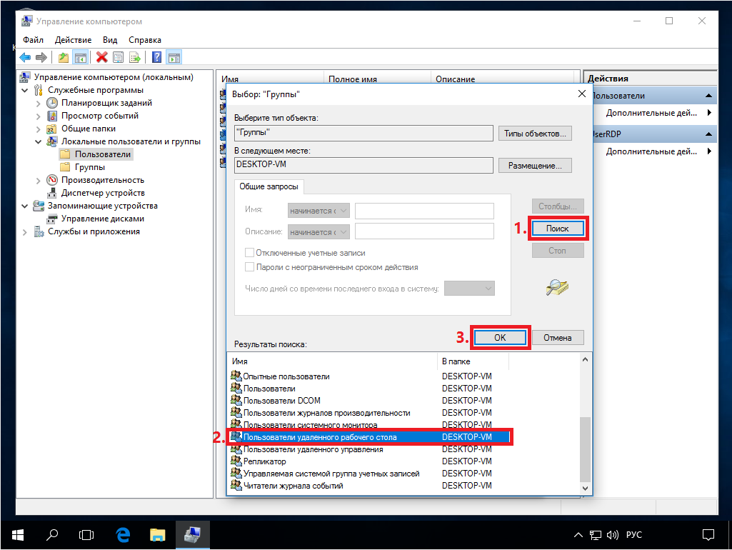 10. Нажмите Поиск, выберите из списка Пользователи удаленного рабочего стола и нажмите OK (Рис.10).