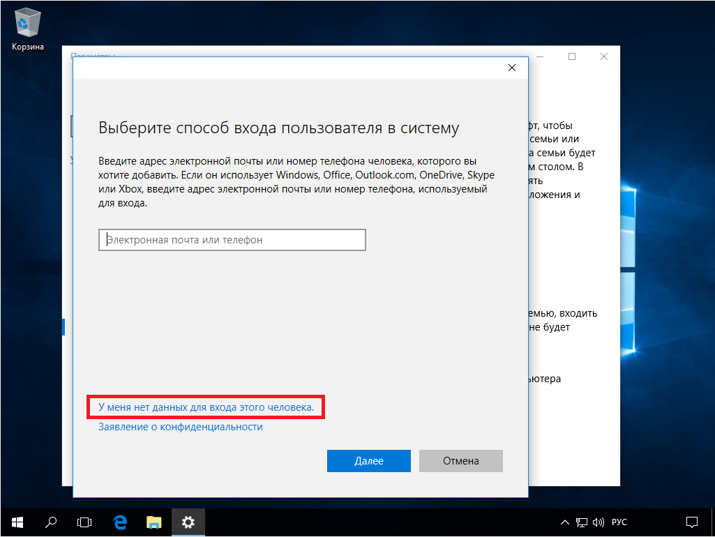3. Нажмите на пункт У меня нет данных для входа этого человека (Рис.3).