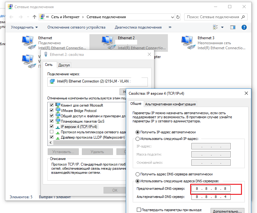 Так же можно еще попробовать сменить DNS на Google Public DNS.