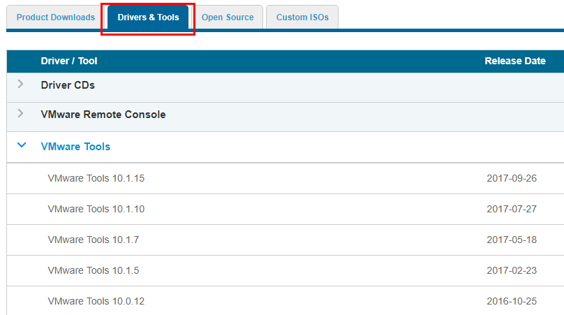 Компания VMware предоставляет VMware Tools для Windows и всех основных дистрибутивов Linux. Их можно найти тут. Сначала надо выбрать нужную версию гипервизора ESXi (или Latest – последний), затем Windows или нужный дистрибутив Linux, и т. д.