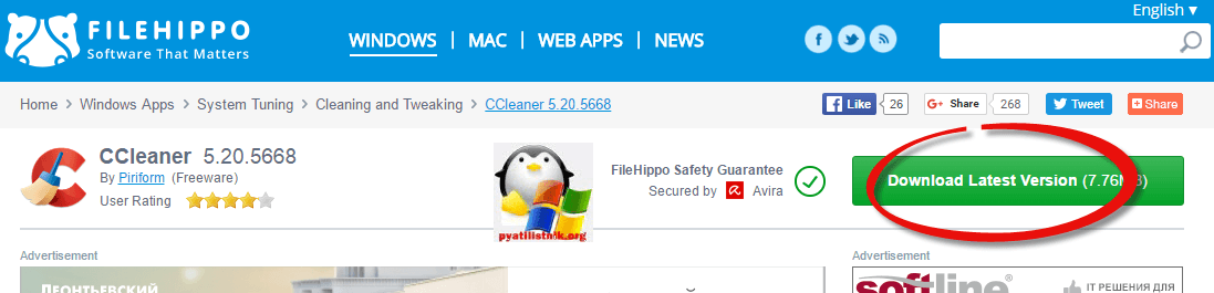 Скачиваем дистрибутив программы запускаем по адресу http://www.filehippo.com/download_ccleaner