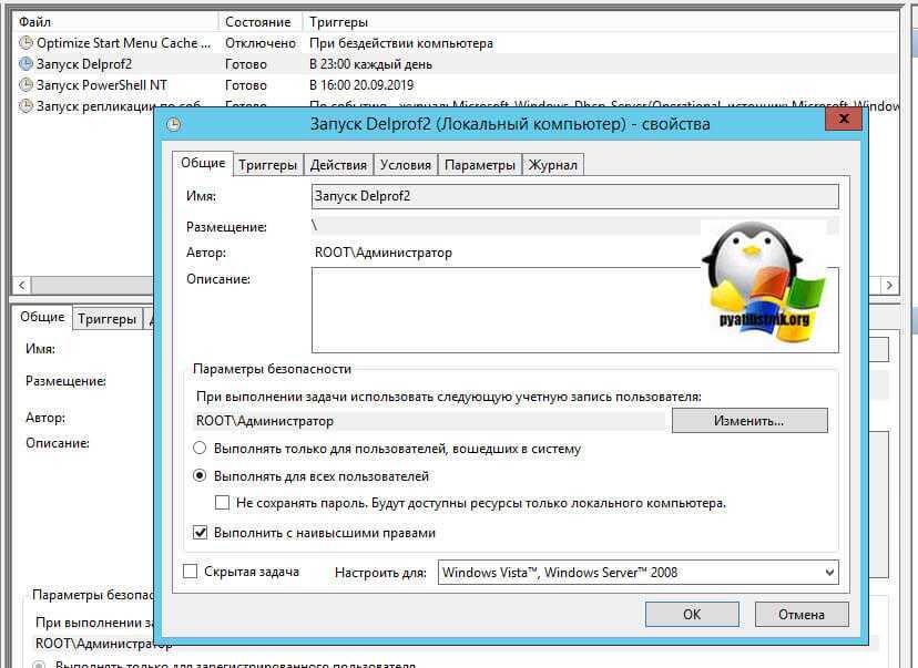Указываем Имя для новой задачи и ставим флажок Выполнить с наивысшими правами: