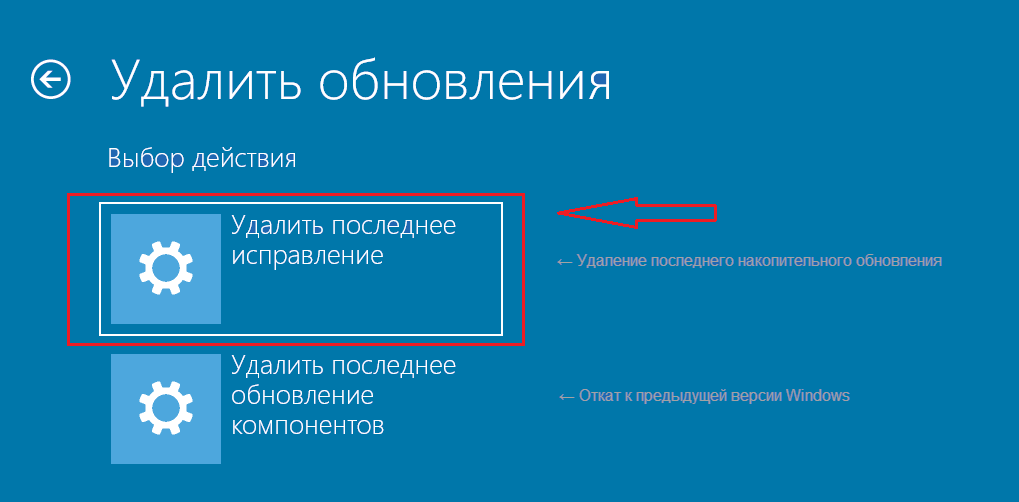 *Не ошибитесь при выборе варианта. Если выбрать вариант Удалить последнее обновление компонентов, будет произведен откат на предыдущую версию системы, если это возможно.