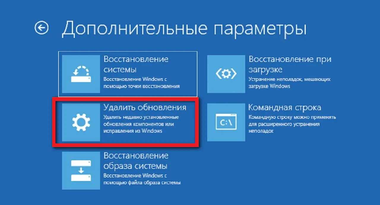 Чтобы удалить последнее обновление, открываемПуск -> Параметры -> Обновление и безопасность -> Восстановление
