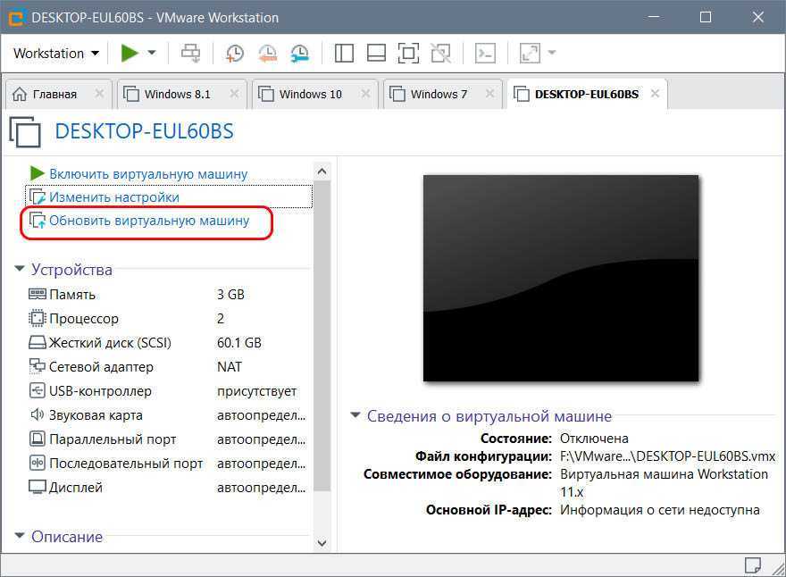 Если вы используете VMware Workstation версии выше 12, желательно обновить машину для лучшей совместимости с используемой версией гипервизора.