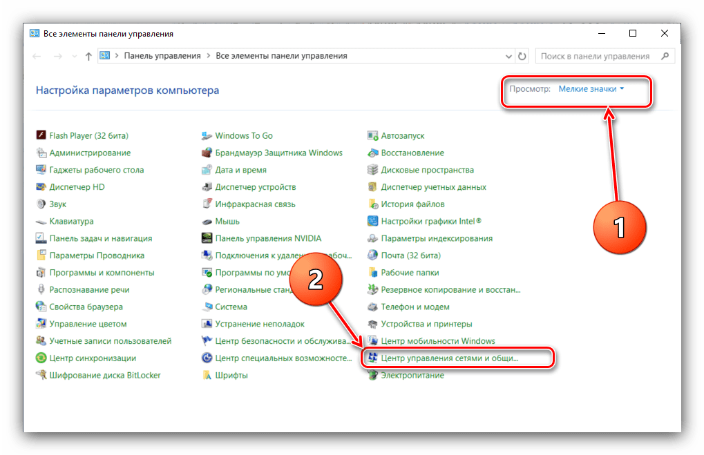 - Переходим в «Центр управления сетями».