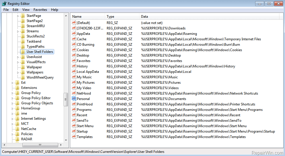 В поле «Значение» введите правильный путь к папке «Мои документы» и нажмите кнопку «ОК». Данные по умолчанию для этого значения: %USERPROFILE%\Documents. Выйдете из редактора реестра и перезагрузите ПК.