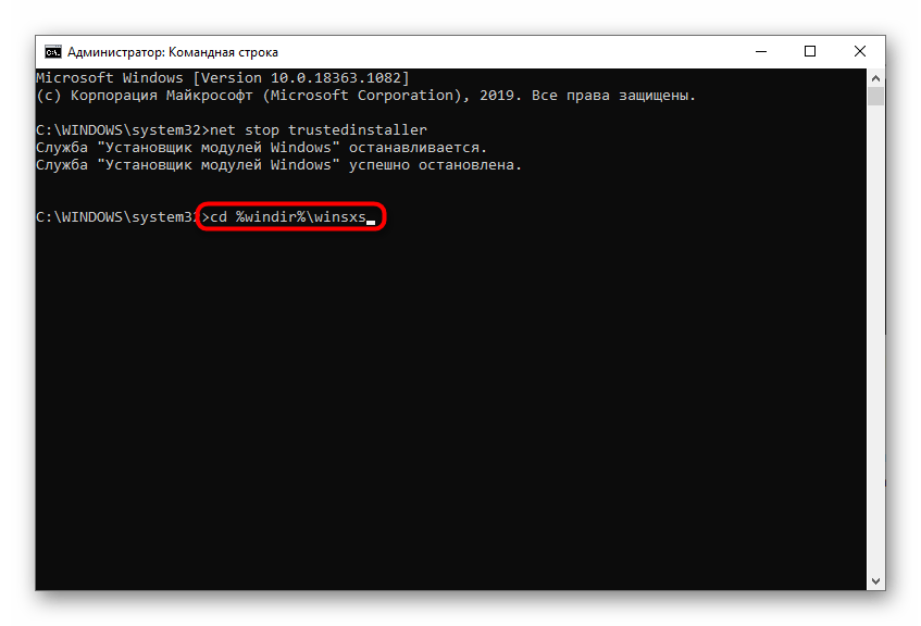 Следом используйте команду cd %windir%\winsxs, чтобы перейти по пути расположения целевого XML-файла.