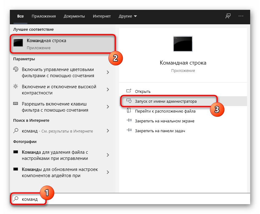 - Дальнейшие действия выполняются в «Командной строке», поэтому запустите это приложение любым удобным образом от имени администратора, например через «Пуск».