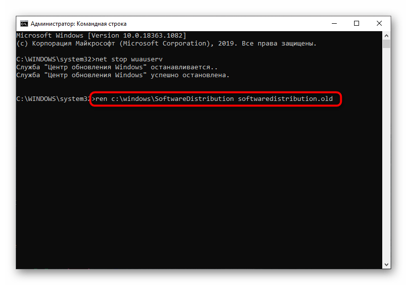Команда ren c:\windows\SoftwareDistribution softwaredistribution.old не удалит папку с файлами, а просто переименует ее, чтобы в случае необходимости изменения можно было откатить.