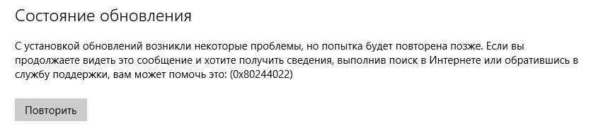 на некоторых компах и серверах при обновлении выпадает ошибка Error 0x80244022.