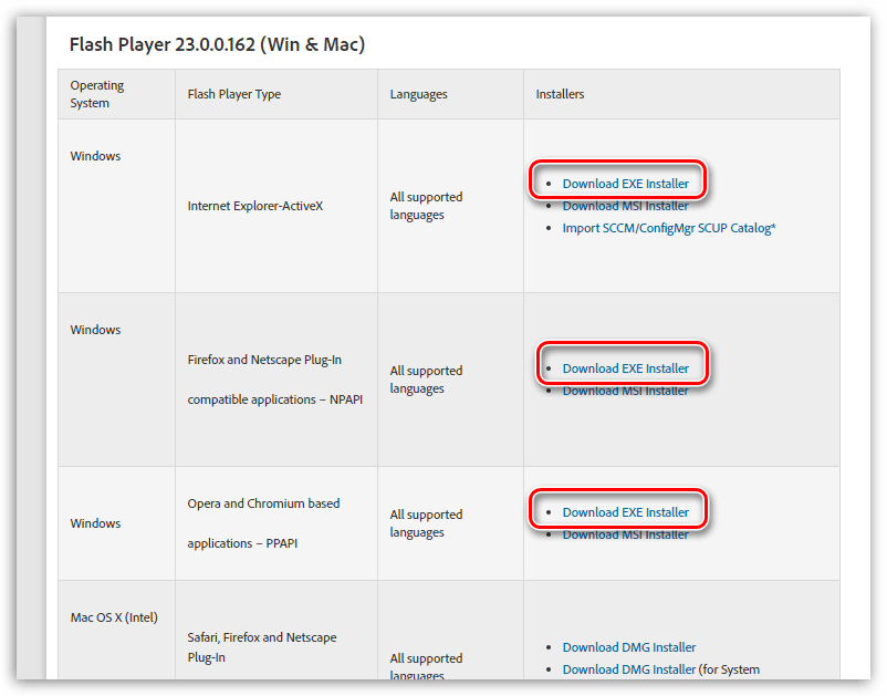 Для этого пройдите по этой ссылке и загрузите инсталлятор Flash Player в соответствии с используемым вами браузером: Internet Explorer, Mozilla Firefox или Opera.