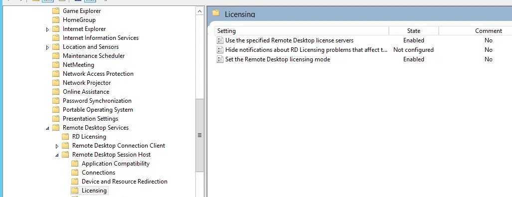 Как вы видите, сервер лицензирования RDS не задан (список SpecifiedLSList пуст). Следующая команда принудительно задаст адрес сервера лицензий RDS.