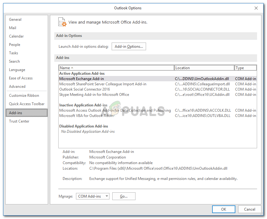 - На левой стороне, нажмите Надстроек и удалите все сторонние надстройки.