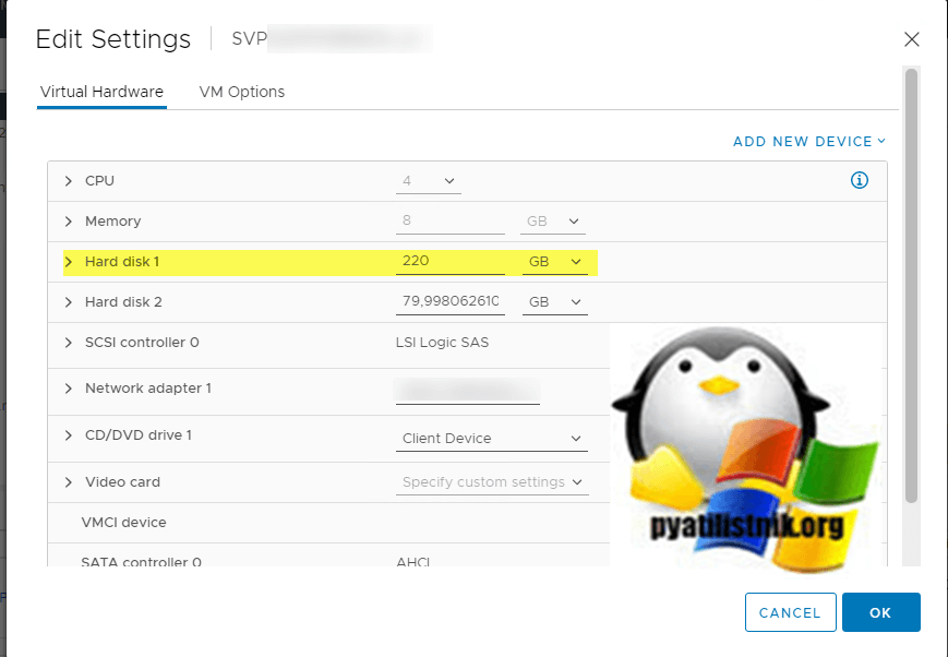 У меня установлен гипервизор второго типа Vmware Workstation 14 и он может подключаться к vCenter Server и выполнять базовые вещи, вы с его помощью можете расширить диск и обойти ошибку «Invalid operation for device ‘0’.». Подключитесь к vCenter Server через Vmware Workstation и перейдите в свойства виртуальной машины.