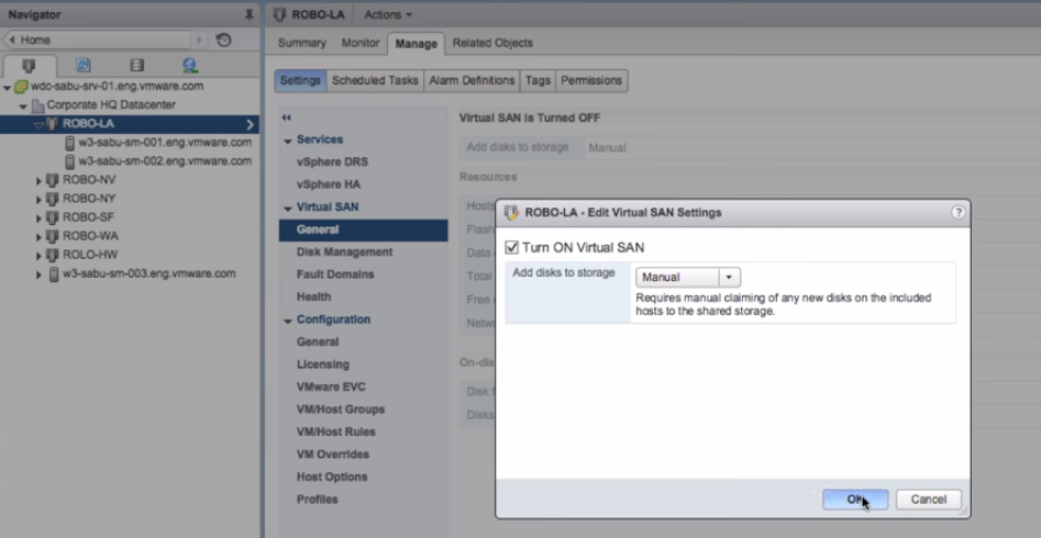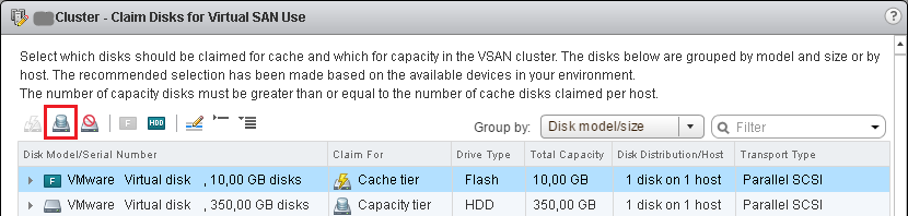 Подробней о настройке VMware SAN 5.5.x-6.5.x можно прочитать здесь (особое внимание стоит уделить ссылкам на vSphere 6.0 / vSphere 5.5 Networking Guide). Завершающим штрихом в настройке Virtual SAN будет назначение дисковых групп
