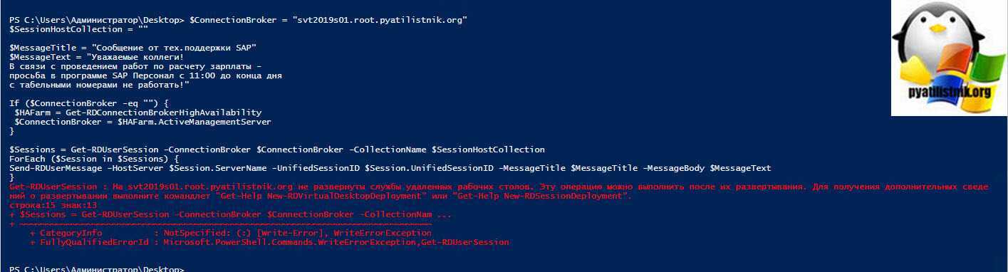 Кстати если вы неправильно развернули RDS ферму, то при выполнении скрипта получите сообщение
