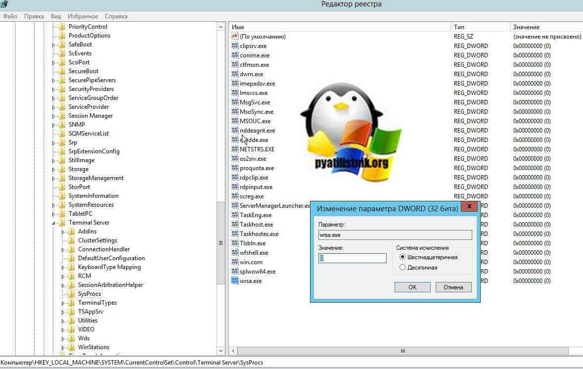 HKEY_LOCAL_MACHINE\SYSTEM\CurrentControlSet\ Control\Terminal Server\Sysprocs
