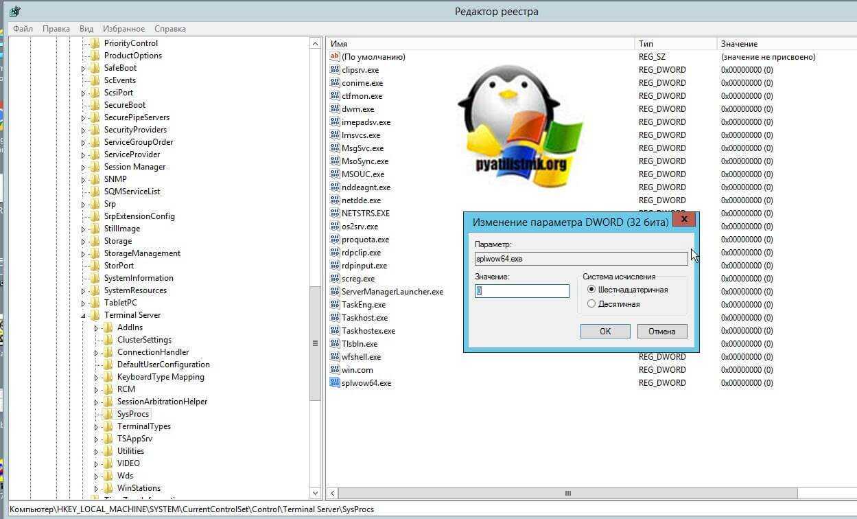 Создаем новую запись REG_DWORD с именем splwow64.exe и значением .