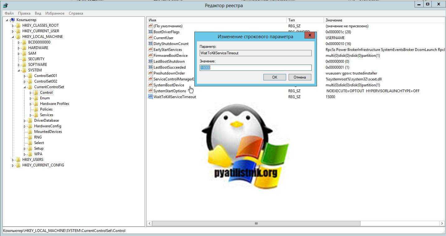 Еще я вам советую слегка увеличить значение одного параметра в реестре WaitToKillServiceTimeout. WaitToKillServiceTimeout — это параметр отвечающий за, то чтобы система закрыла все фоновые приложения. Windows обычно ждет 5 секунд, чтобы фоновые службы очистились и закрылись, когда вы делаете выход из системы или выключаете компьютер. Некоторые приложения могут изменить это значение при установке, предоставляя своим фоновым службам дополнительное время для очистки. Windows принудительно закрывает фоновые службы после этого периода времени. Это значение определяет, сколько секунд Windows ожидает, прежде чем сделать это. Windows автоматически выключится, если все службы будут успешно закрыты до истечения таймера. Я не советую ставить данное значение ниже 2-х секунд, это 2000. В нашей ситуации, когда у вас бесконечно долго висит надпись выход из системы, я советую выставлять WaitToKillServiceTimeout на 15-20 секунд, это значения 15000 или 20000.