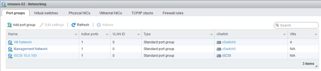 We will also add a new port group. Please name the port group accordingly. In my example, I named it simply iscsi. Note that our storage system is on another subnet.
