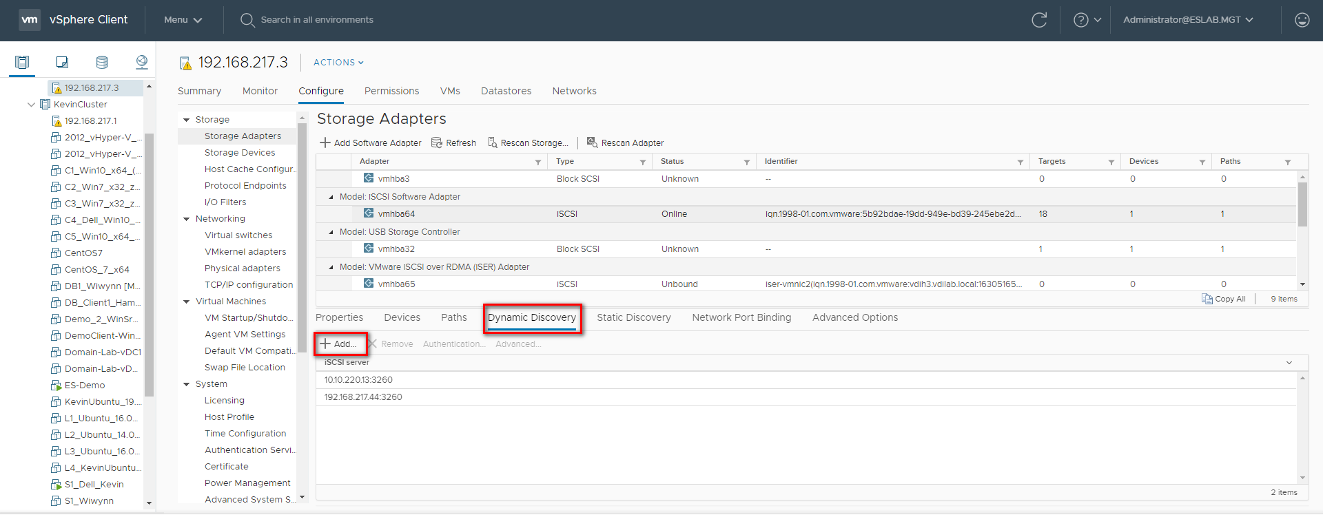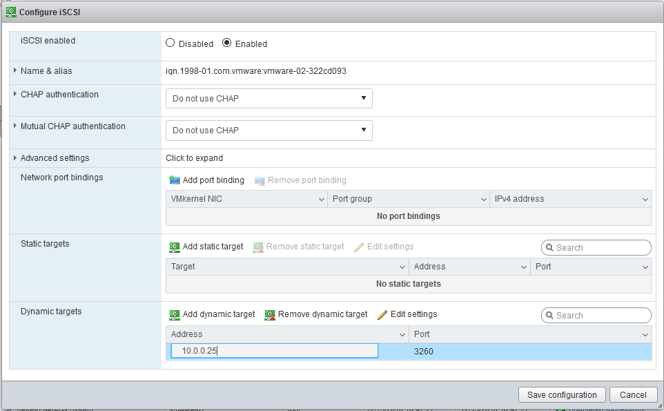 Enable the iSCSI adapter under Storage | Adapters