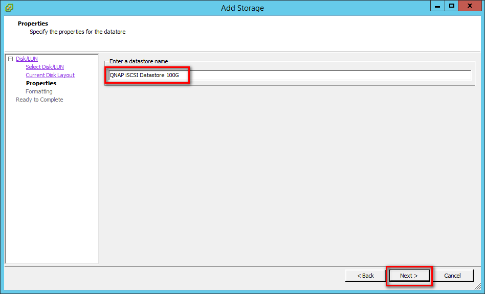 Name your new datastore something descriptive and easy to recognize.