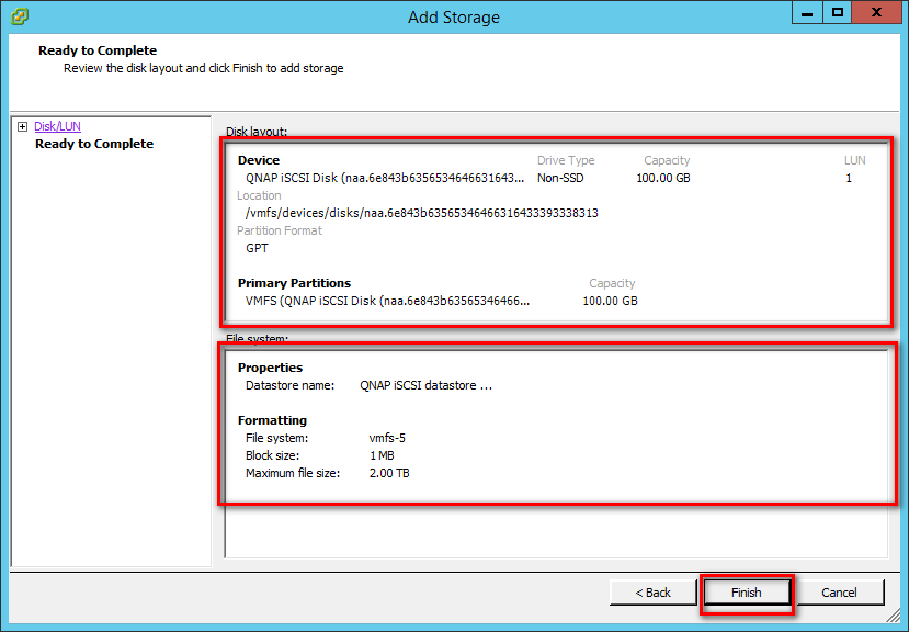 Step 13: Review the datastore configuration information and click “Finish”.