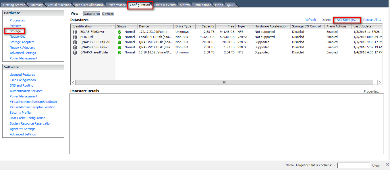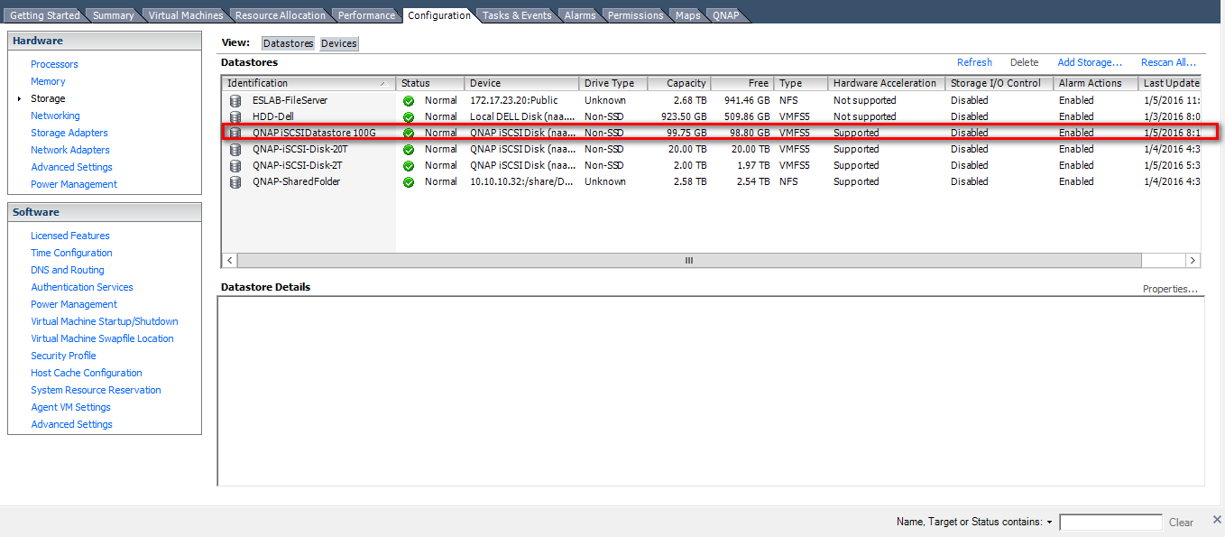 In my setup I have Qnap TS800 series storage arrays.