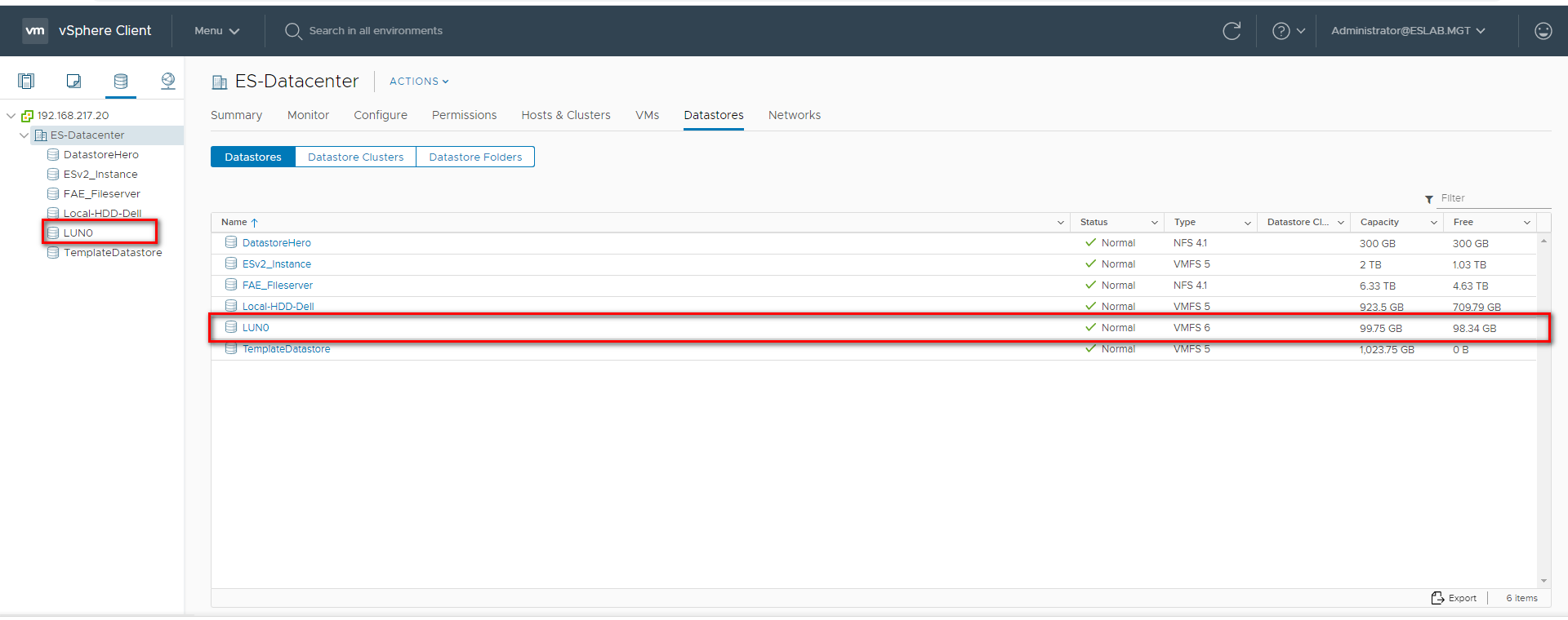With the information listed in the above table, assuming a 100GB LUN is deployed on ES dual controller B (SCB), it can be mounted using the following steps on the ESXi host.