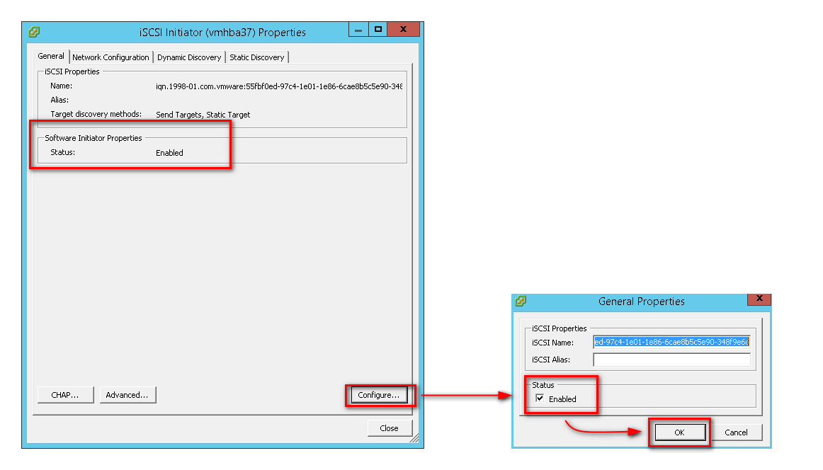 If the iSCSI adapter isn’t enabled already, select «Enabled»