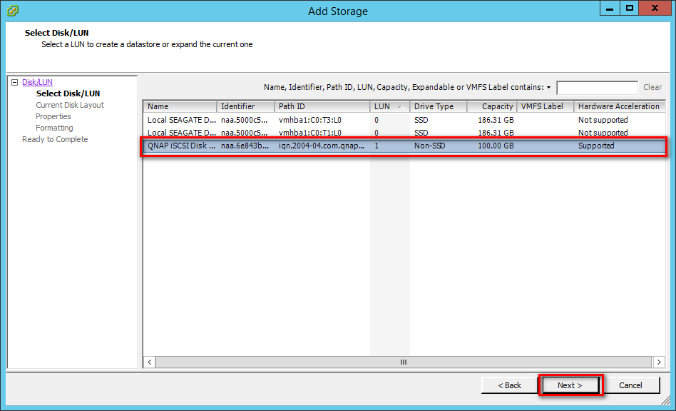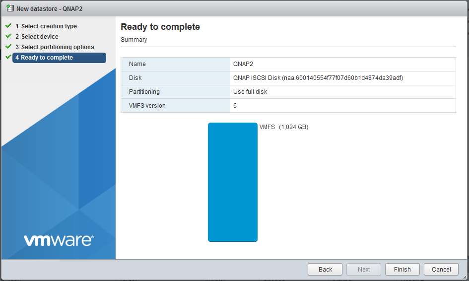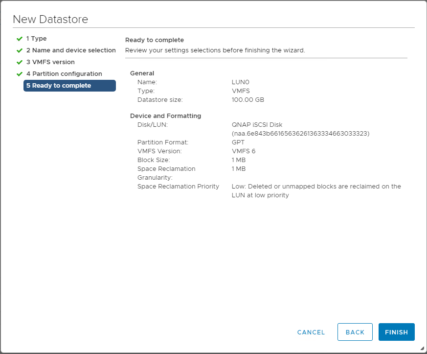 Step 14: The datastore on the iSCSI-based storage device will be listed.