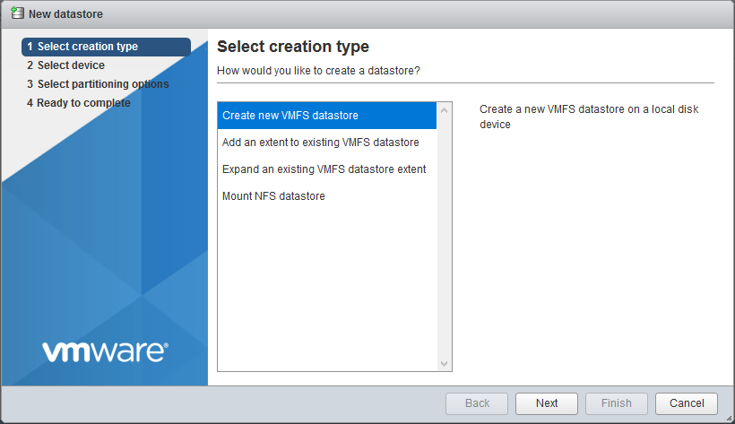 Select «Create new VMFS datastore