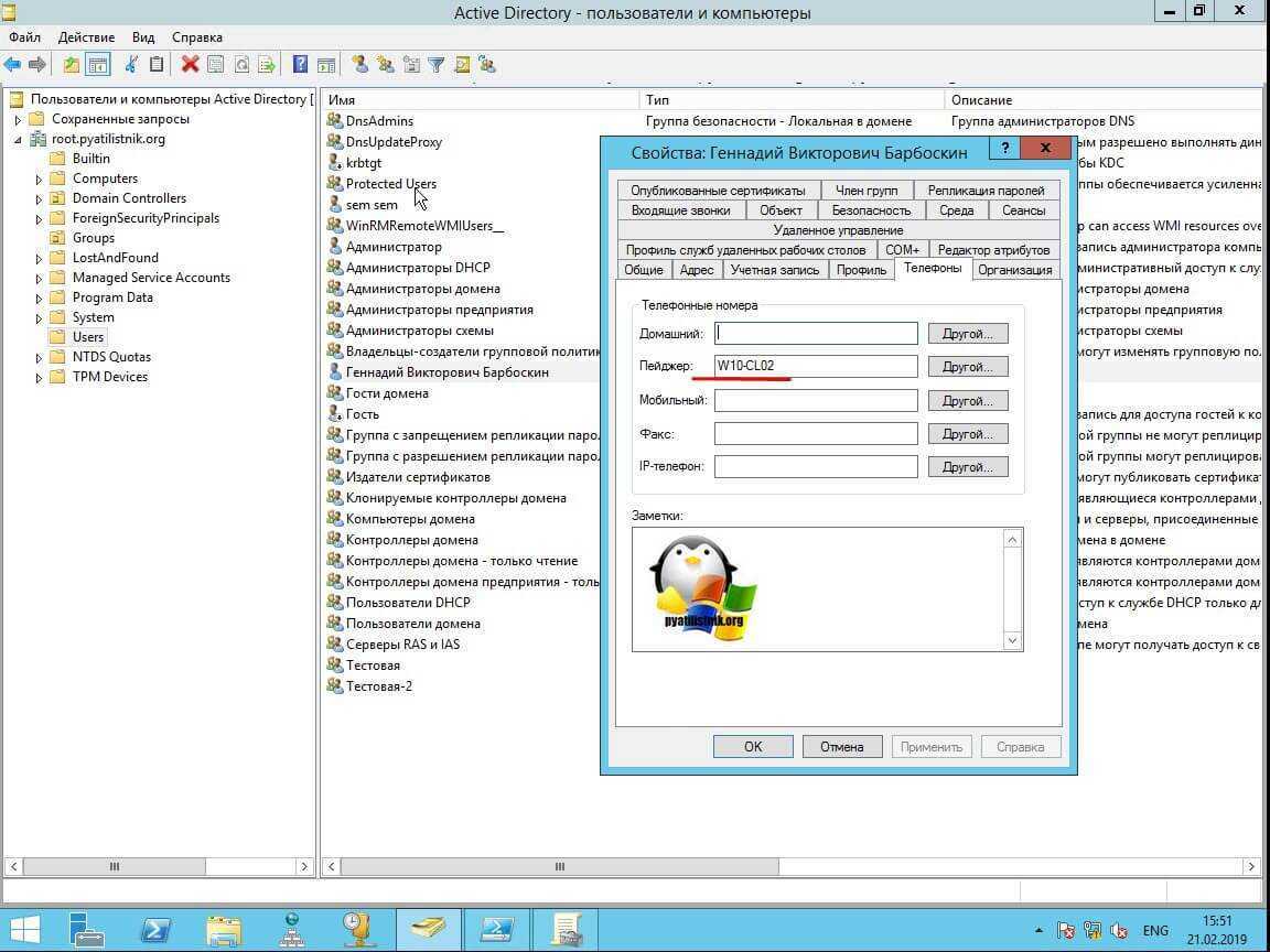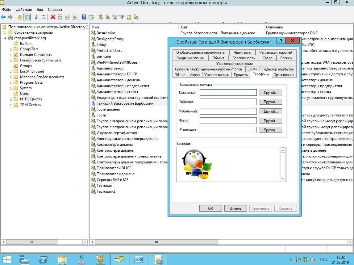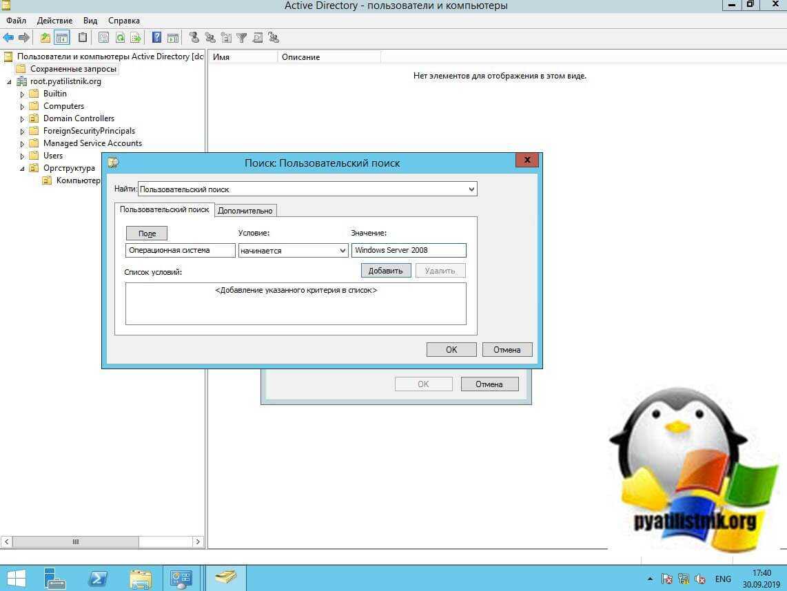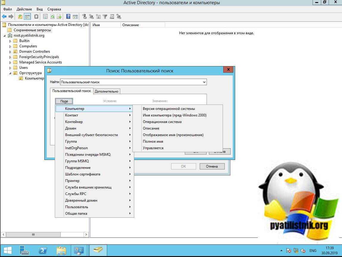 Поиск пользователей по заданным критериям. Доменные пользователи.